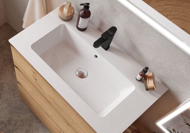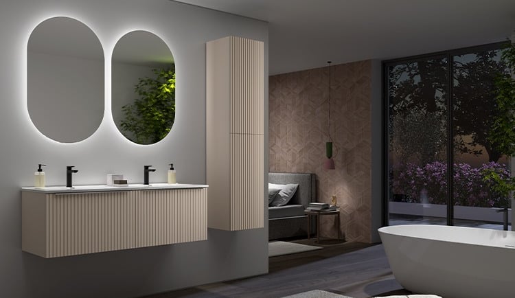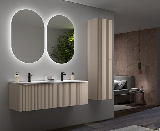 Visit a Salgar partner showroom—see the list below. The UK-stocked Walnut Maya, Macchiato, Night Blue, Terracotta, and White Cotton are ready to go. Want the 1000mm size or a different colour? Showroom staff will order it from Spain, added to a regular UK stock run, no extra fee. For a double setup, ask about pairing two 600mm units with a double basin—perfect for two people sharing. Pick your handle—Fibi, Bai, or Lina—to finish it off.