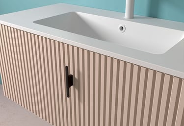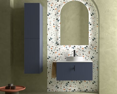 Need something bigger for two, maybe? Combine two 600mm units and add a double basin. It’s a smart solution for a shared bathroom—plenty of space, no trouble. The UK stock comes in five colours: Walnut Maya, Macchiato, Night Blue, Terracotta, and White Cotton. Walnut Maya offers a warm tone. Night Blue brings a bold edge. Each unit has a grooved fluted style front—simple, clean, and a bit distinctive.