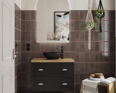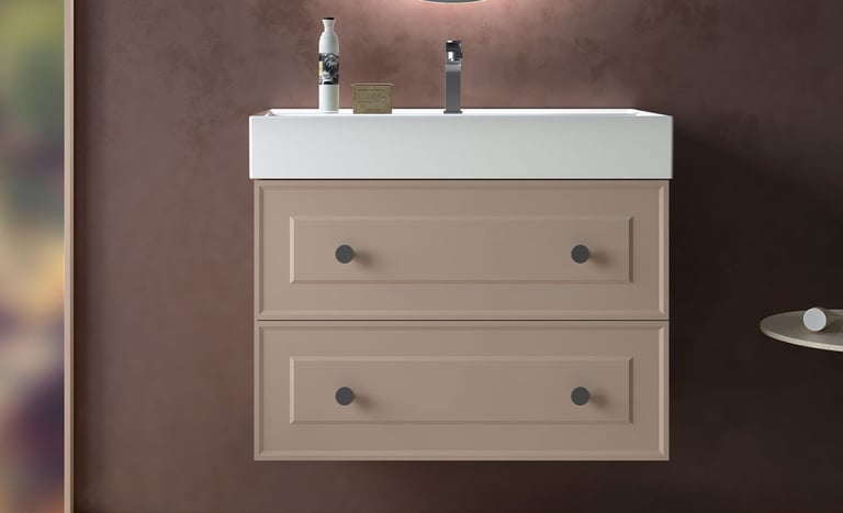 Picture a Black Velvet Renoir with a Handlebar gloss gold in your bathroom. Its deep finish catches the light. Or see a White Cotton unit with a Knob matt black brightening a small space. Two drawers keep clutter tidy. It’s luxury you use—modern, lasting, practical. UK stock or Spanish extras, your call.
